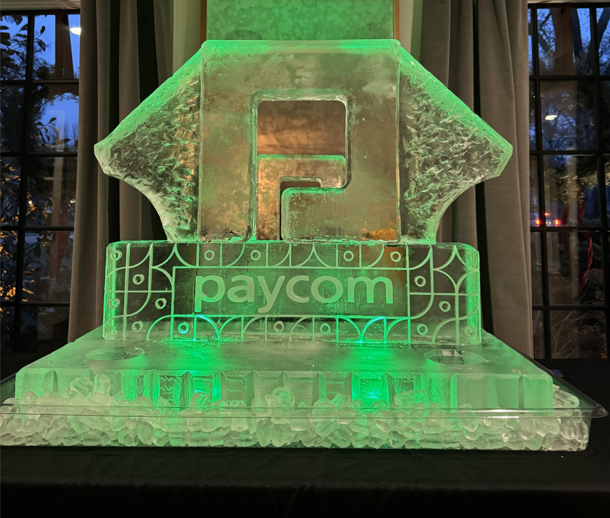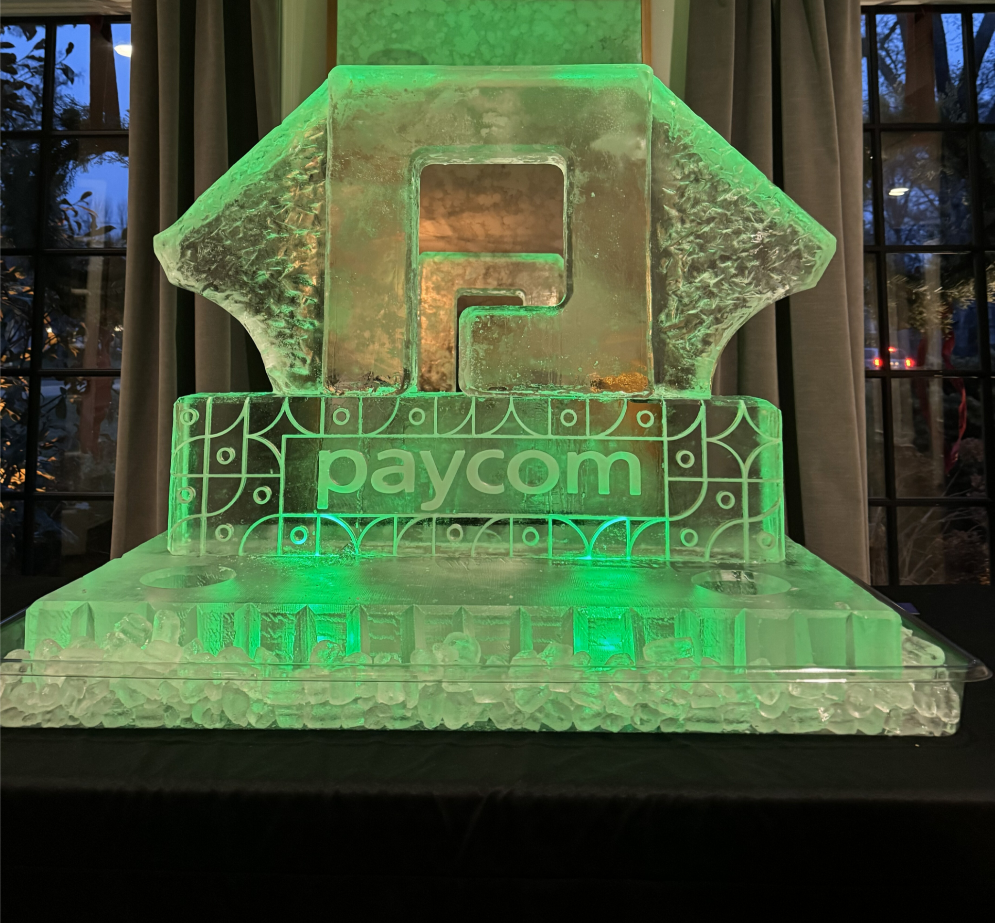 From sophisticated gatherings like the Husch Blackwell event to large-scale brand moments with Paycom, ice became a conversation starter—custom-branded, beautifully lit, and designed to reflect each company’s personality. Clean lines, thoughtful details, and flawless execution made these events feel elevated without feeling overdone.