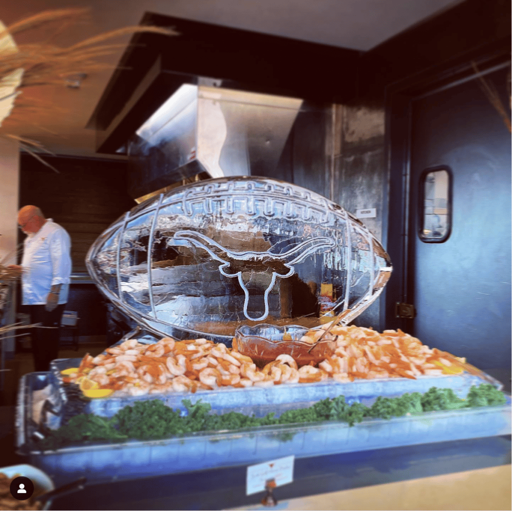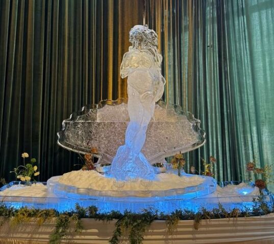 Whether it’s elegant swans for a wedding, a custom monogram, a branded logo carve, or a themed centerpiece for a corporate party, a sculpture is instant atmosphere.